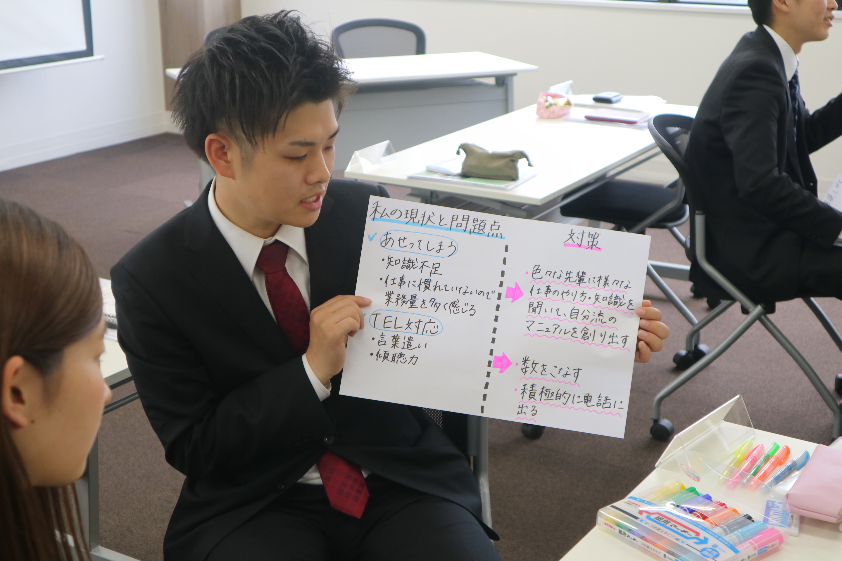 今回は1ヶ月ぶりに集まる同期と大いに「この1ヶ月の仕事の共有」をしていただきたいので、グループワーク中心の研修となっております♪
