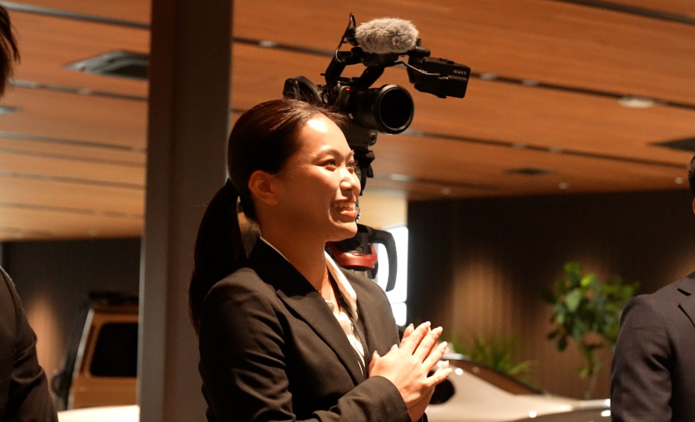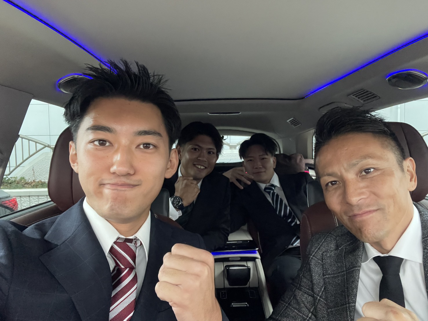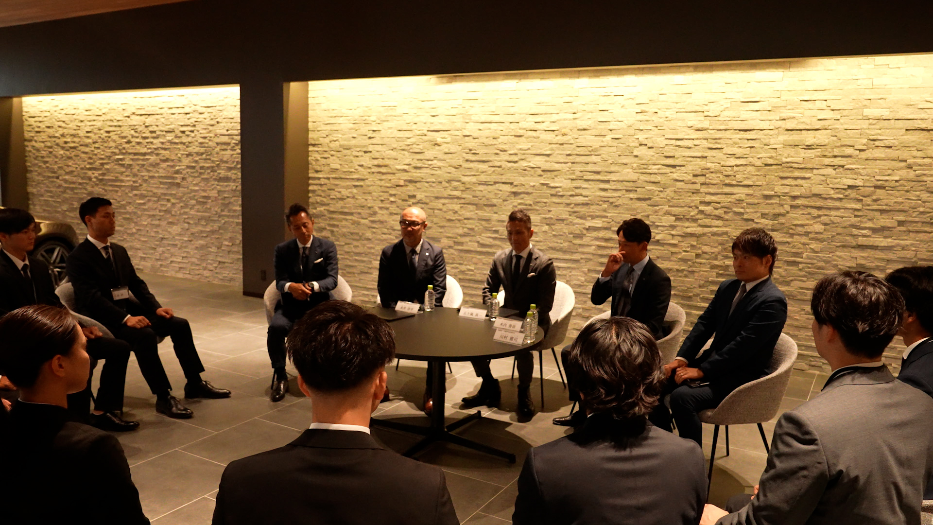 ショールームの中央で車に囲まれた内定者の表情からは、少し緊張した様子が見られましたが、これから始まる内定式に期待が高まります・・・!!