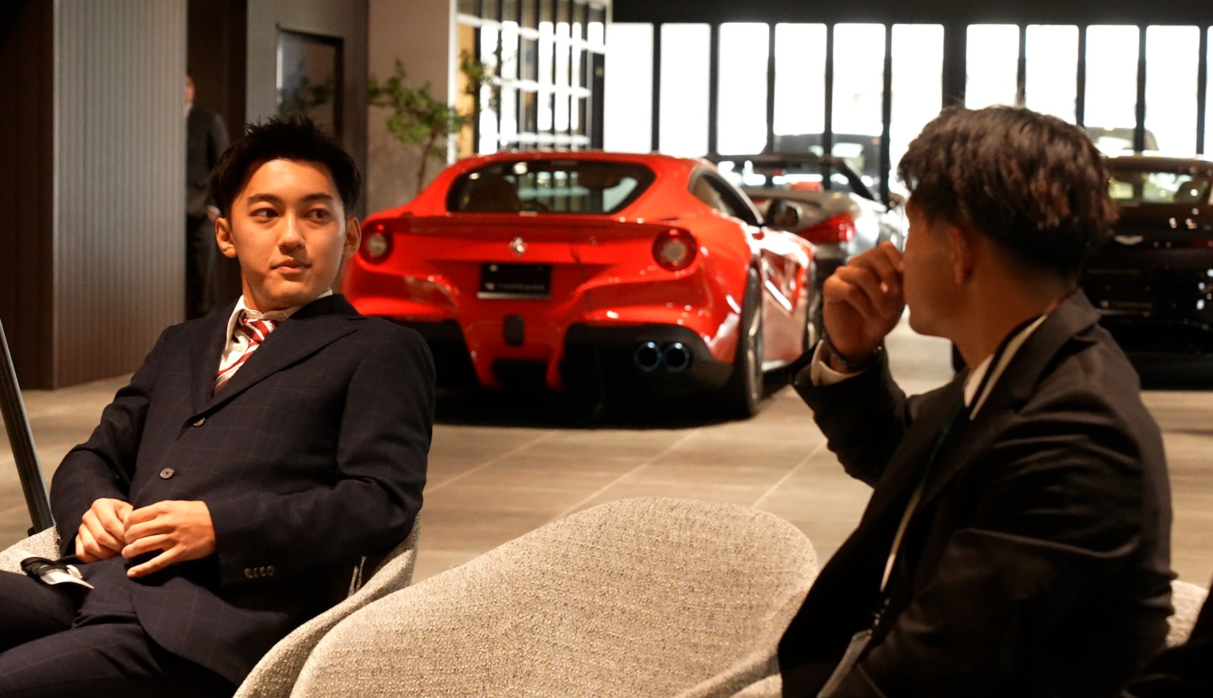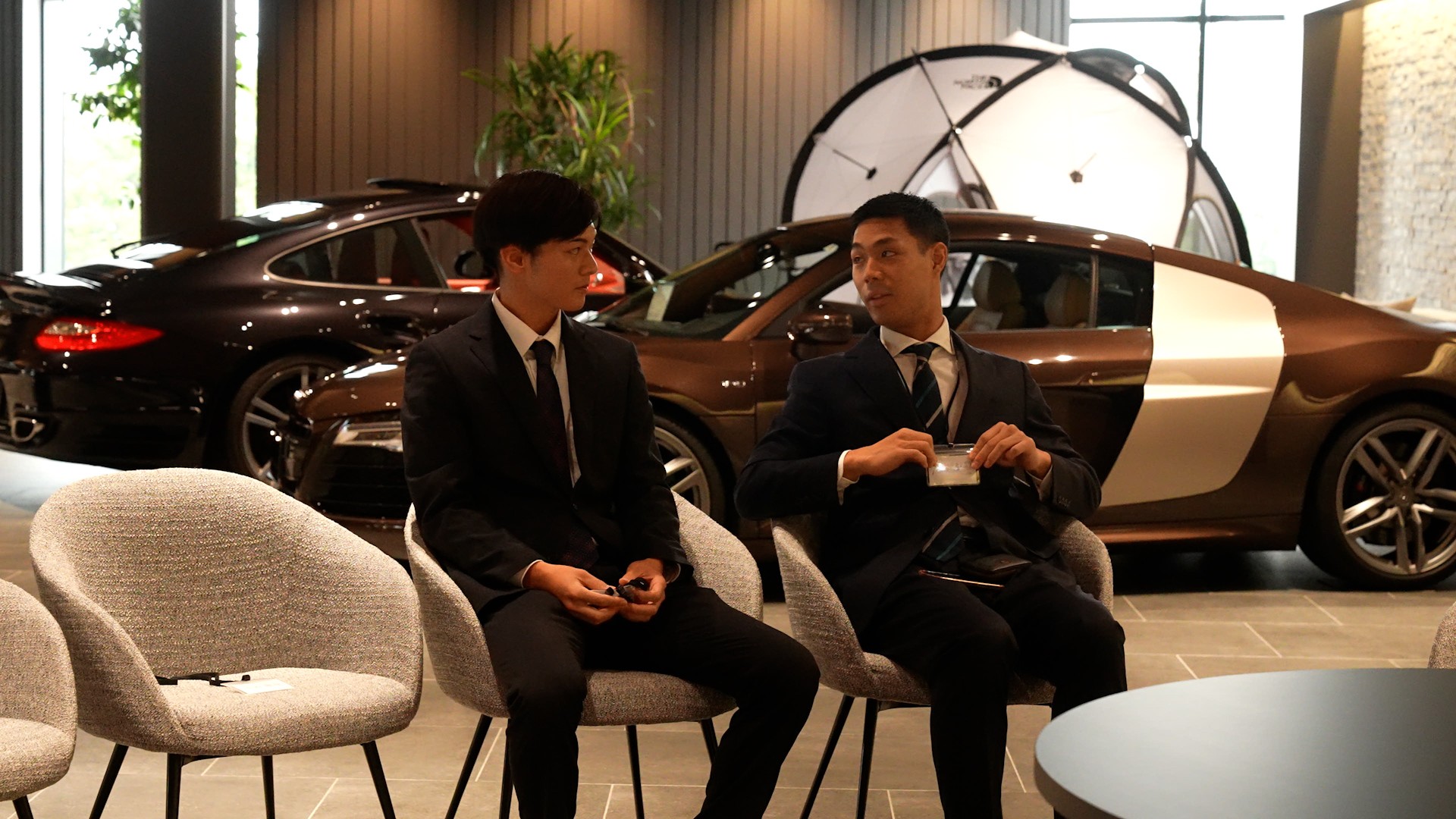 今年7月にオープンしたばかりの本店ショールームを会場に、高級輸入車に囲まれた非日常的な空間での開催。