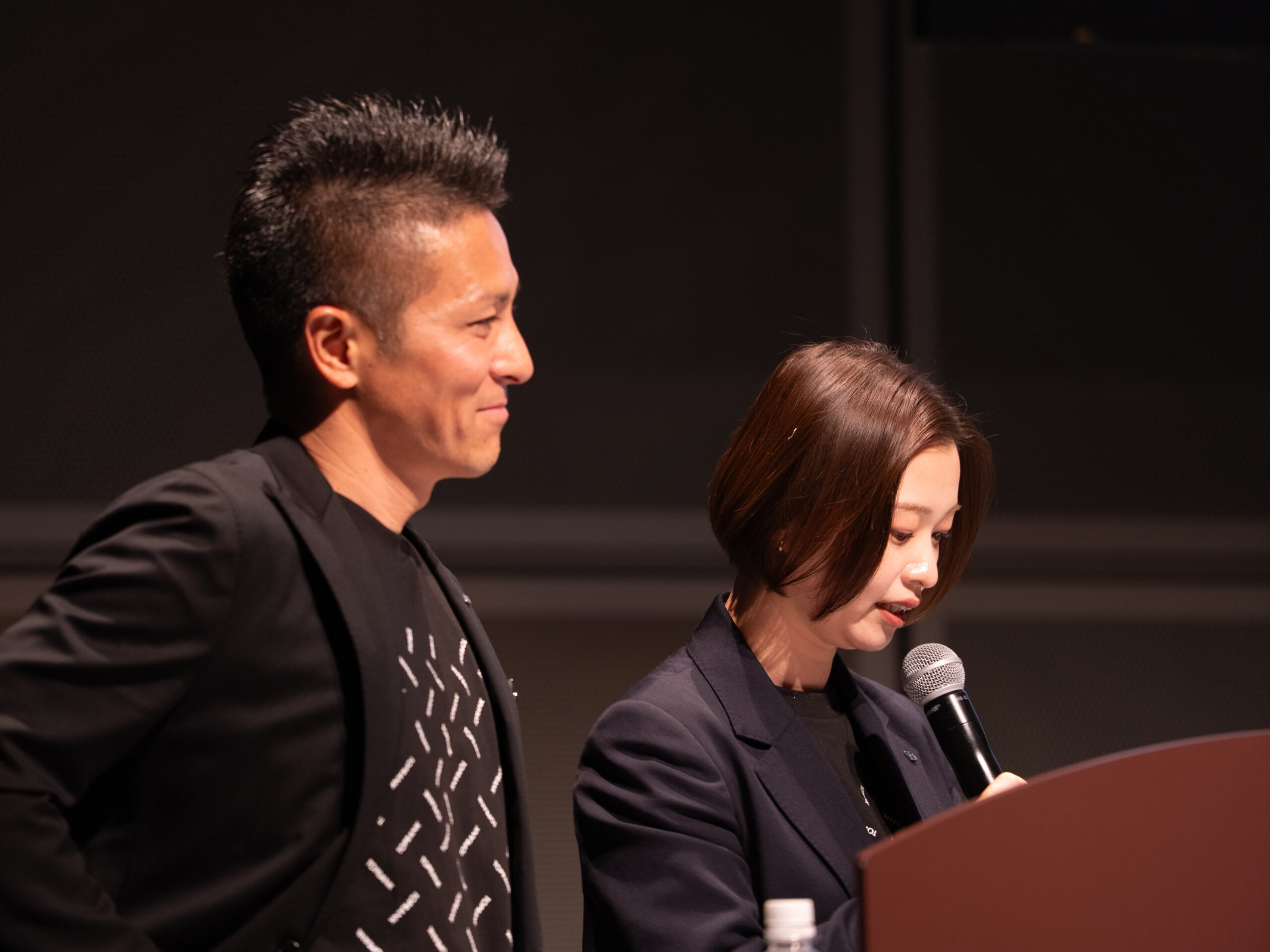 役員の発表中、予定時間を少し過ぎるとMCから軽やかなフォローが入る場面も。