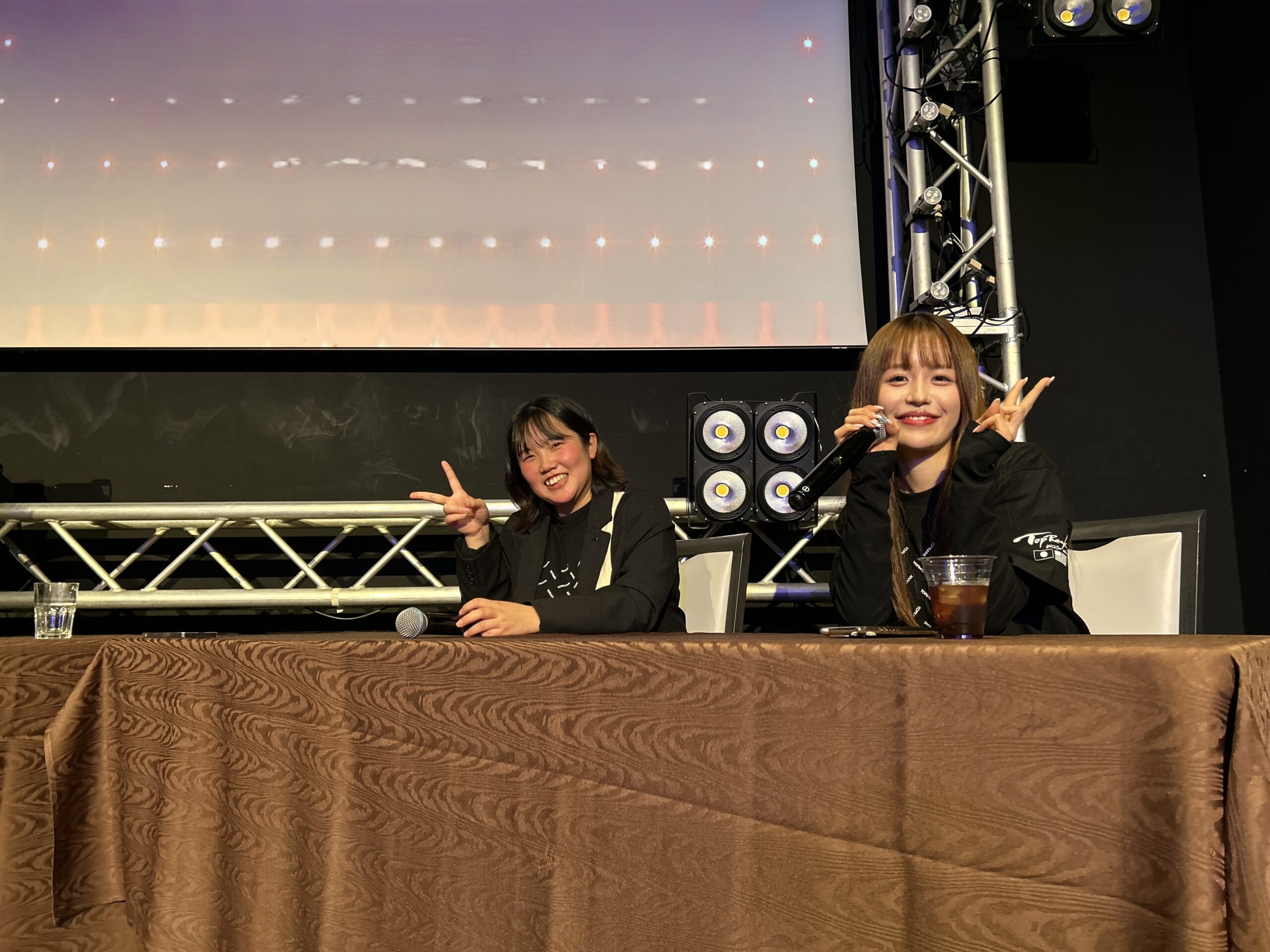 インタビュー中には同じ部の仲間たちがステージ前にぞろぞろと集まり、まるでファンが取り囲むアイドルステージ(笑)